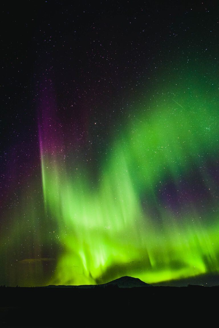 Benannt nach der römischen Göttin der Morgenröte, ist die Aurora eine faszinierende Lichtshow am Nachthimmel. Die Aurora Borealis und Aurora Australis – auch Nordlichter und Südlichter genannt – kommen am Nord- und Südpol vor. Gelegentlich kann das Weltraumwetter, das mit der Erde interagiert, dazu führen, dass sich Auroren noch weiter von den Polen entfernen. Diese bunten Lichter ändern ständig Form und Intensität, von schwach und verstreut bis hell genug, um zu lesen.